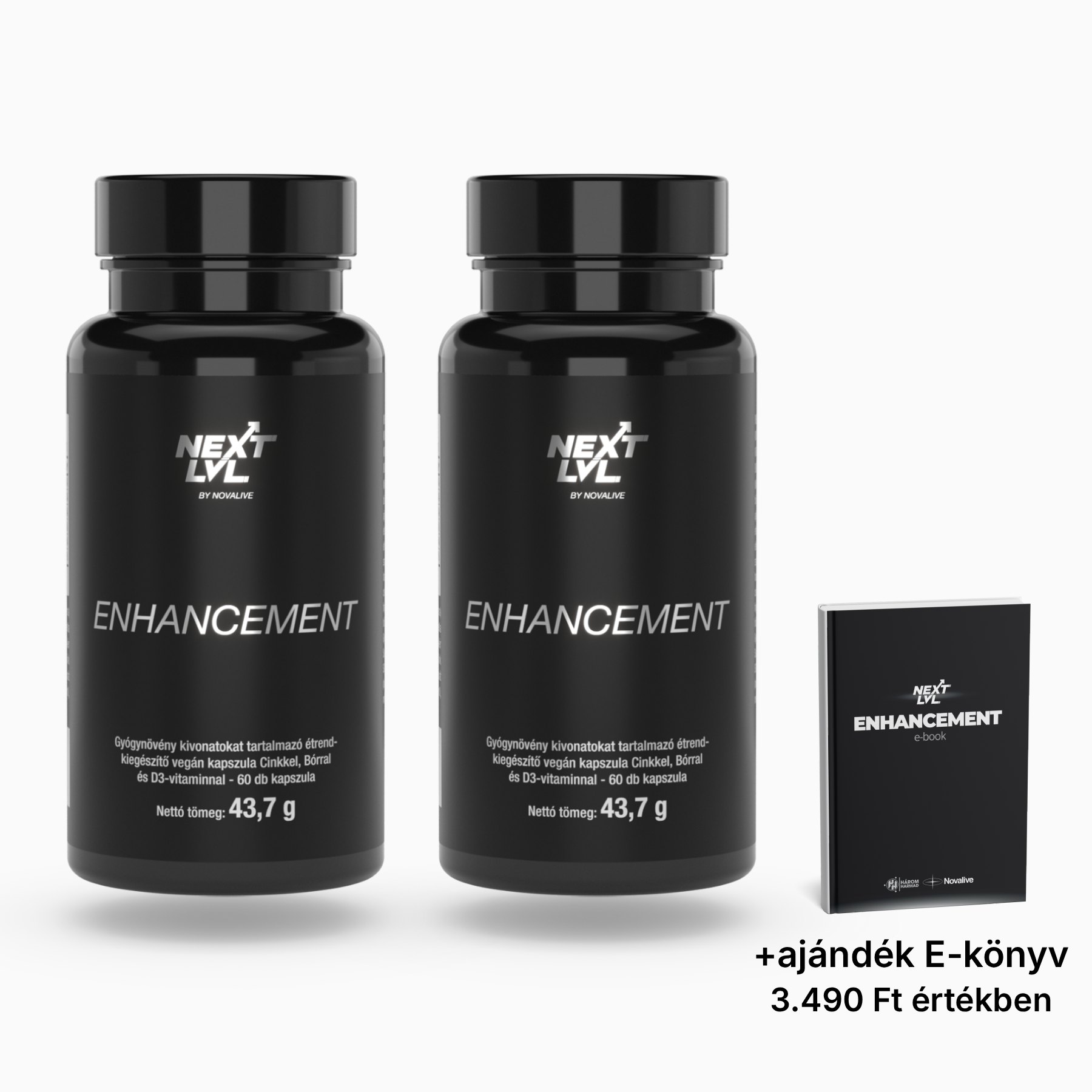 A Next Level Enhancement v2 egy tudományosan összeállított formula, amely gyógynövény-kivonatokkal (Ashwagandha, Görögszéna, Csalángyökér), valamint kulcsfontosságú mikrotápanyagokkal (Cink, Bór, D3-vitamin) segíti a hormonális egyensúlyt, a libidót, az energiaszintet és a regenerációt.