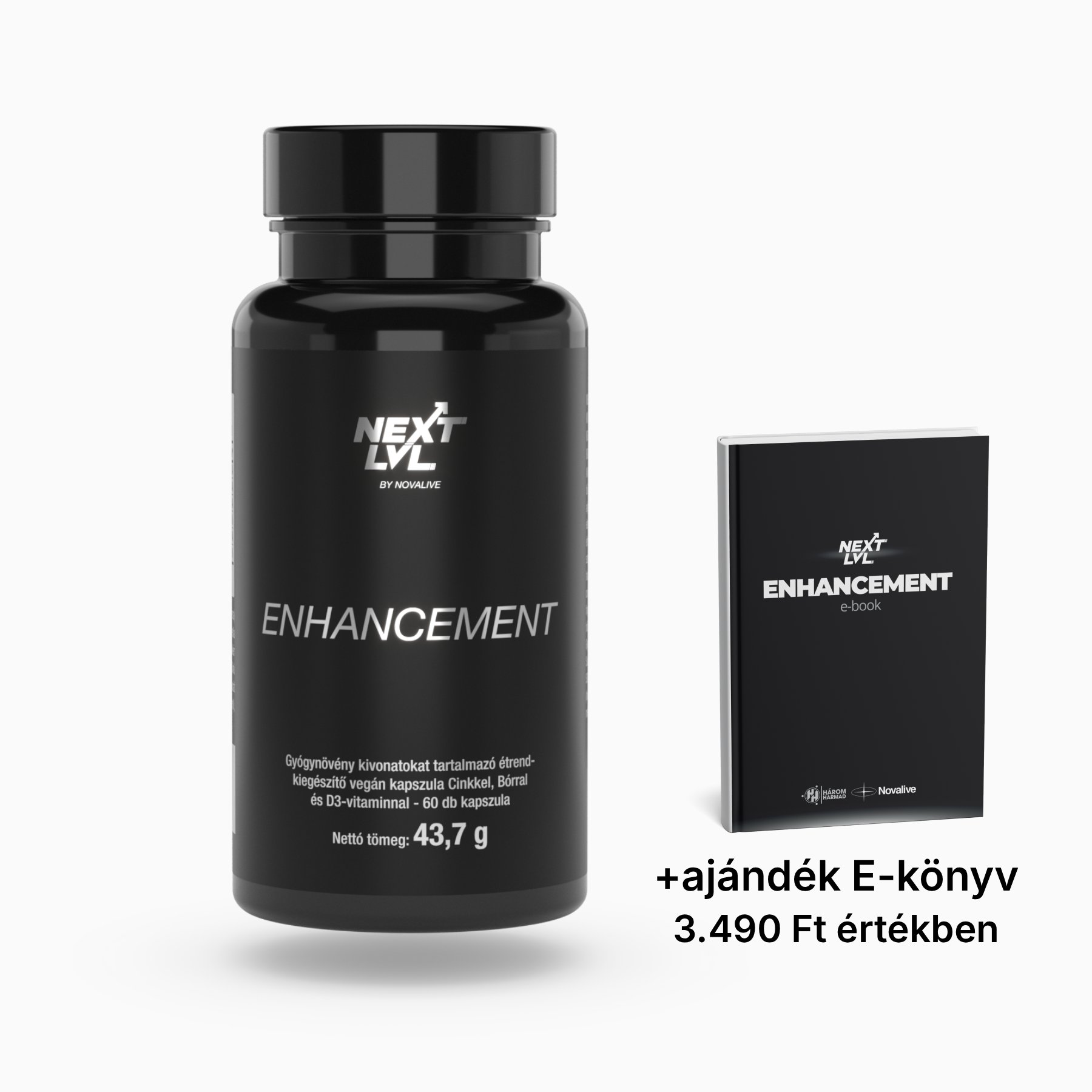 A Next Level Enhancement v2 egy tudományosan összeállított formula, amely gyógynövény-kivonatokkal (Ashwagandha, Görögszéna, Csalángyökér), valamint kulcsfontosságú mikrotápanyagokkal (Cink, Bór, D3-vitamin) segíti a hormonális egyensúlyt, a libidót, az energiaszintet és a regenerációt.